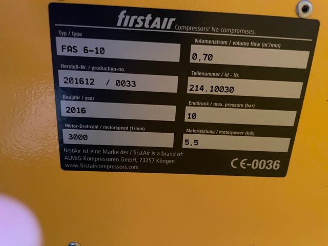 Produktinformationen "5,5 kW Schraubenkompressor FirstAir FAS6 Werkstattkompressor"